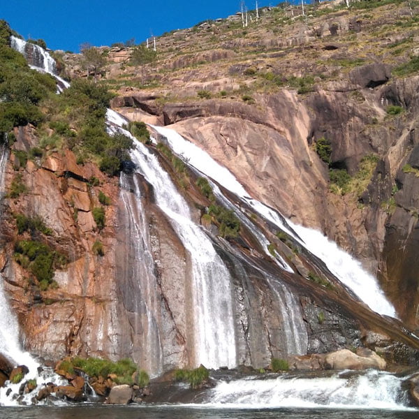 La cascada del Ézaro la forma el Río Xallas en su llegada al mar, con unos 40m de caída. Se trata de la única desembocadura fluvial de Europa que cae directamente sobre el mar. Además de disfrutar de esta increíble escena, os recomendamos subir al mirador del Ézaro para gozar de unas increíbles vistas.