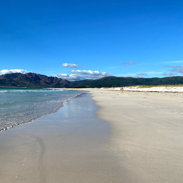 Es la playa más larga de Galicia y en una de las más grandes de España. Sus 7km de arenal se encuentran en un entorno rural situado entre el Monte Pindo y el Océano Atlántico. Tiene varios accesos, el más conocido es la Boca do Río, y también el más concurrido.